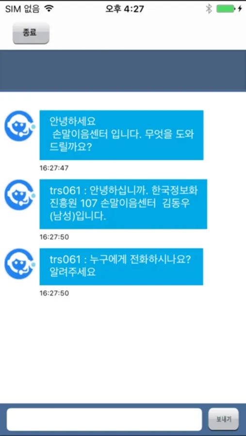 청각장애인이 문자로 내용을 입력하면 중계사가 음성으로 상대방에게 내용을 전달, 상대방의 내용을 중계사가 다시 장애인에게 문자전달하여 통화를 지원하는 실시간 서비스 입니다.