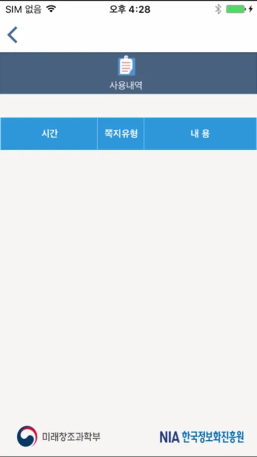 - 사용내역 : 자신이 보낸 쪽지메시지를 저장하고 다시 확인할 수 있으며 수정 / 삭제 / 다시보내기를 할 수 있습니다. 사용내역은 서버를 통하지 않고 본인의 단말기에 저장되는 데이터로써, 개인정보 등에 대한 문제가 없으며 손말이음센터 어플리케이션을 삭제하면 쪽지내역 모두 역시 삭제되게 되게 됩니다.
