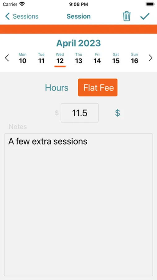 - Create sessions with an hourly rate or flat fee