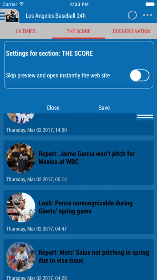 Simply the best! Los Angeles Dodgers 24h mashes up news from newspapers and web portals in a single app!