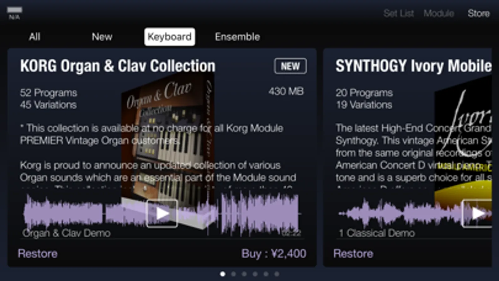 KORG Module has five dedicated sound engines, providing a number of high-quality sounds that can be played back on your iOS using the "NATIVE ENGINE”. These engines feature technology that was developed for KORG's historic line of workstations and synthesizers including: Acoustic Piano, Electric Piano, Clav, Organ, Multi, and Hybrid. Each display has carefully selected parameters, making it convenient and easy to adjust the sounds. We’ve also carefully ensured ideal playability and designed the system for ultra-low latency. Once you experience the quality of the sounds being produced from the slim body of your iPad, you'll agree that Module is radically different than anything else currently on the market.