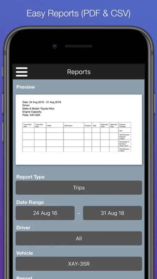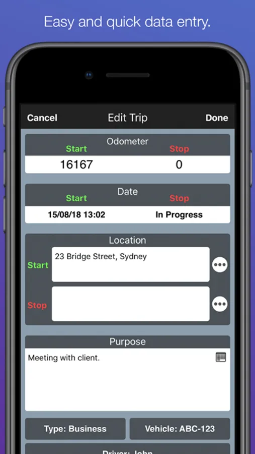 Logging information for a trip has never been so easy thanks to the GPS auto-fill feature that will automatically fill in your location, with a press of a button, and calculates the distance traveled using the GPS of your device.