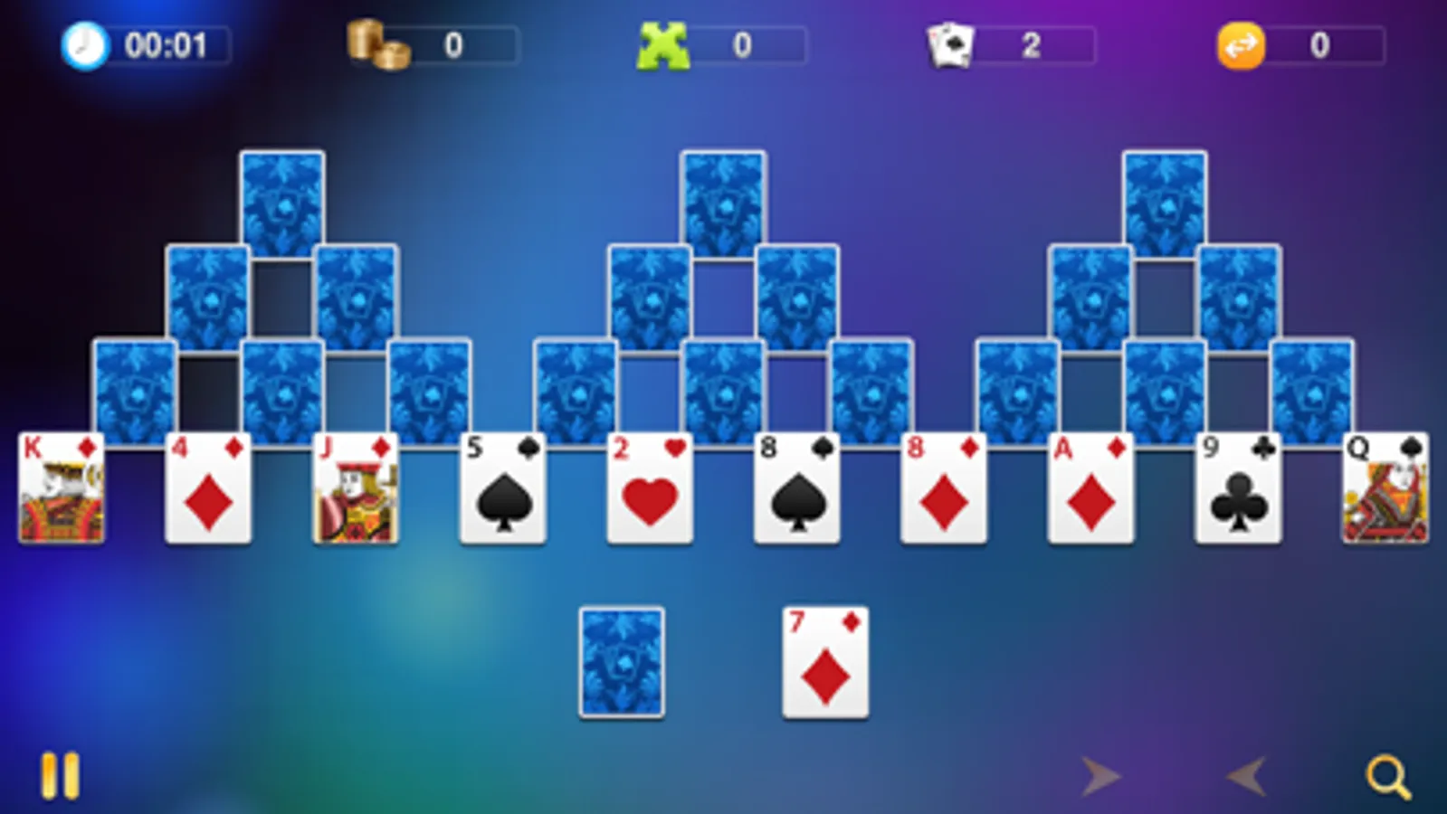 As the player, your aim is to move all cards from the layout to the waste pile. Demolish the peaks and win the game.
