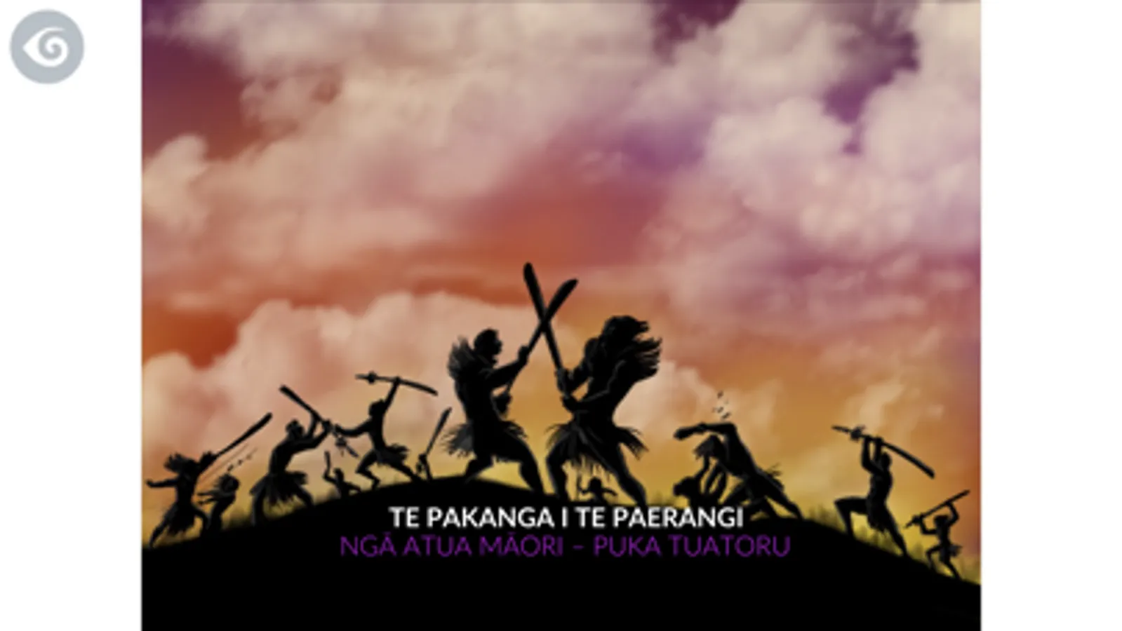Te Pakanga i Te Paerangi tells the story of the battle between Tūmatauenga and Whiro; sons of Ranginui (Sky Father) and Papatūānuku (Earth Mother). This is an event that stemmed from long-held grudges between the two brothers and each of their factions.