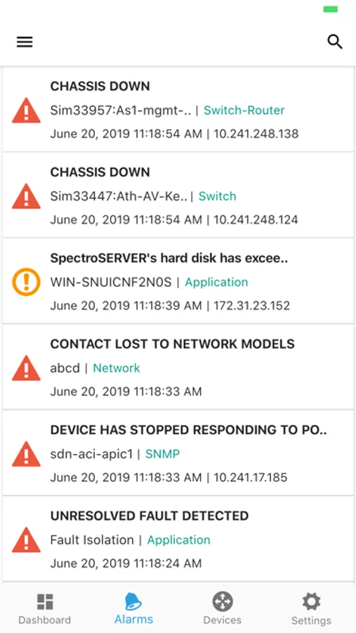CA Spectrum Mobile app lets you connect to Spectrum webserver, periodically allows you to poll and retrieve the recent alarms and devices. The app displays detailed information of alarms such as landscape, description, date, and time. This app also lets you perform alarm actions such as view, search, filter, acknowledge, assign troubleshooter and delete. In addition to this the devices list as well.