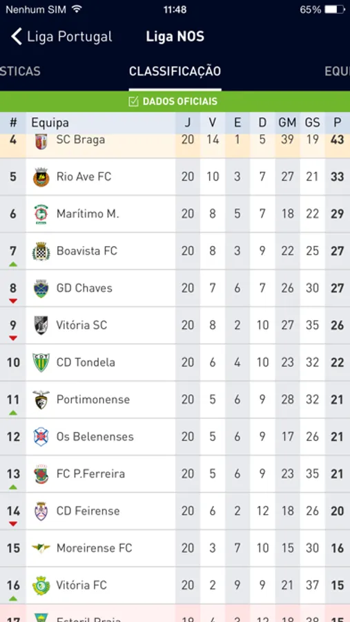 • Estatísticas Oficiais;