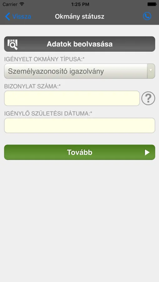 - személyazonosító igazolvány státuszának lekérdezése (ingyenes és Ügyfélkapu/Telefonos Azonosítási szolgáltatásra vonatkozó regisztráció nélkül is használható)