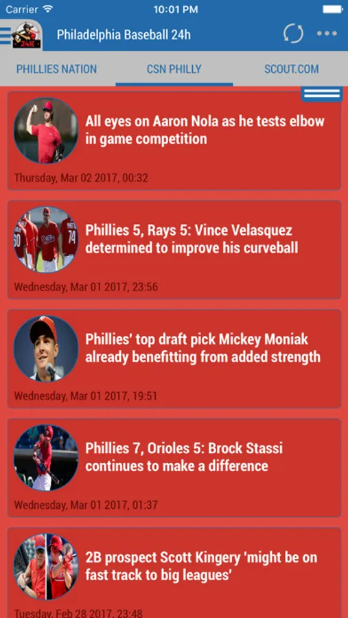 Simply the best! Philadelphia Phillies 24h mashes up news from newspapers and web portals in a single app!