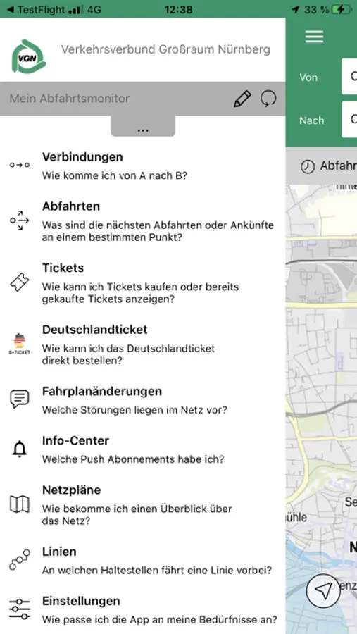 VGN Fahrplan & Tickets ist die mobile Fahrplanauskunft des Verkehrsverbundes Großraum Nürnberg (VGN). Ob Sie mit S-Bahn, R-Bahn, U-Bahn, Tram oder Bus im Verbundgebiet unterwegs sind – VGN Fahrplan & Tickets ist Ihr stets verfügbarer Begleiter. Schnell und unkompliziert erhalten Sie Verbindungsauskünfte, aktuelle Abfahrtszeiten und sehen, auf welchem Gleis Ihr Zug abfährt. Dank Echtzeitinformationen bleiben Sie auch bei kurzfristigen Änderungen oder Störungen stets auf dem Laufenden, nach Wunsch auch mit Push Benachrichtigung im Info-Center. Auch mit Ihrem PKW kommen Sie dank der P+R Routenführung immer optimal ans Ziel. Kaufen Sie schnell und bequem ausgewählte VGN-Tickets - und wenn Sie möchten - gleich direkt aus der Verbindungsauskunft. Übrigens, in Nürnberg wird inzwischen jeder vierte Einzelfahrschein über diese App erworben.
