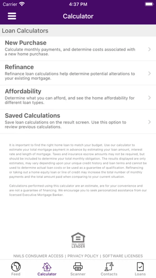 Our highly trained executive mortgage bankers are always available to answer your questions, but with our new Mortgage app, you can use our advanced tools to:
