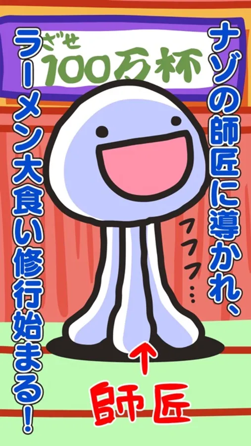 制限時間内にすばやく連打をして、食いしん坊なふしぎな生き物「ふにゃもらけ」にたくさんのラーメンを食べさせよう!