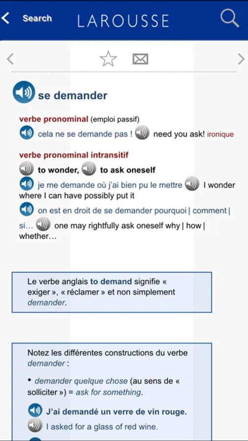 With this Éditions Larousse application you can access our most comprehensive French-English dictionary at your fingertips; the equivalent of 2500 pages!