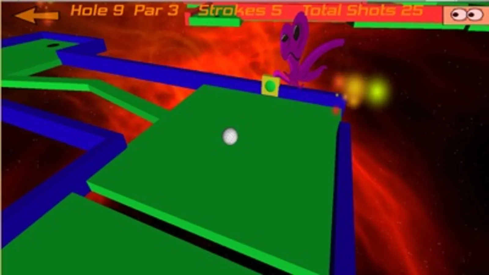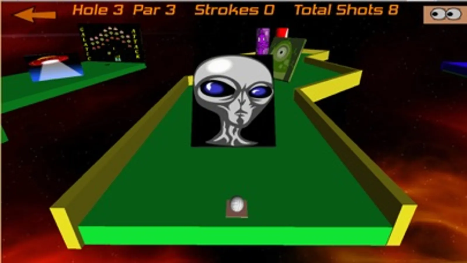Welcome to Crazy Golf in Space, this mini golf game has plenty of atmosphere with laser toting aliens, spinning planets, invading aliens, robots and monsters.