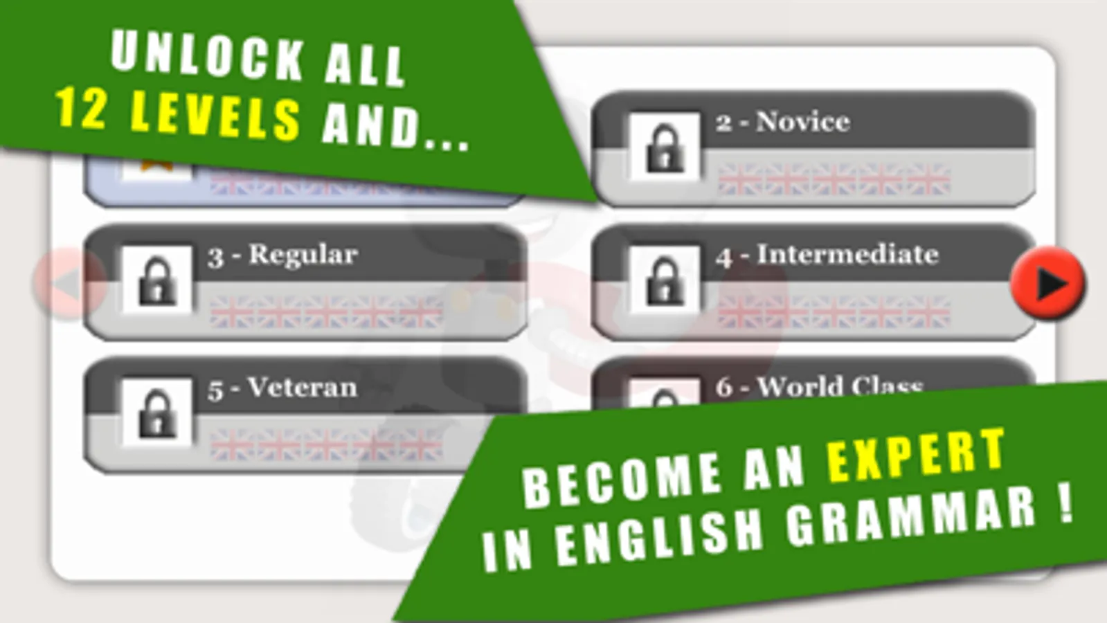 Advanced users and false beginners who already have a good vocabulary bases may opt for Englishtracker Advanced which is also available on the App Store.