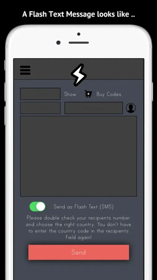 Flash text messages are handled differently regarding recipient operator and smartphone. So in most cases a Flash-Text will be: