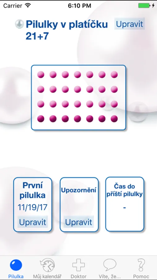 Při zvolení počtu platíček v balení budete týden před užitím posledního platíčka upozorněna, že je čas jít pro nový recept k lékaři.
