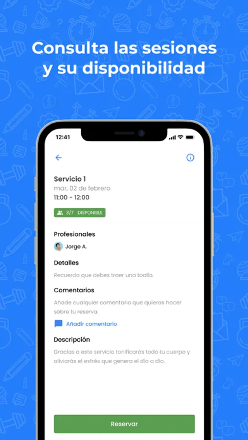 · Consulta las sesiones que ofrece tu centro, así como su disponibilidad.
