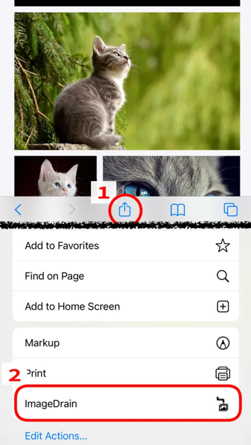 * If you do not find ImageDrain icon, tap "Edit Actions..." on the share sheet and enable ImageDrain.