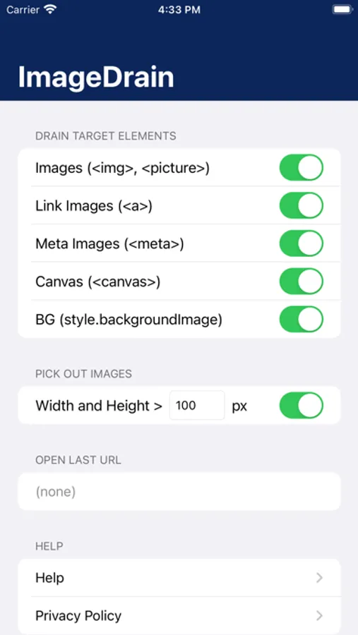 ImageDrain is an Action Extension that provides an image download function for Safari. You can select and download images which you see on Safari.