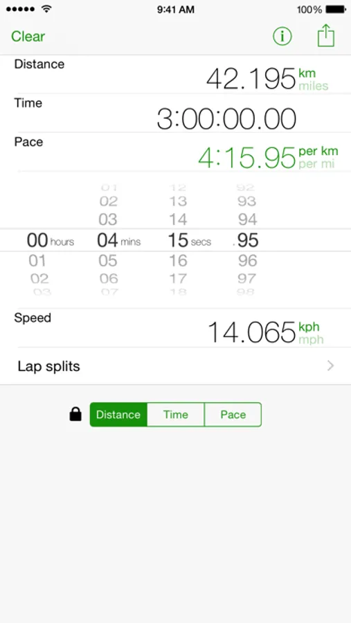 - Toggle Distance, Time and Speed independently between miles and kilometres for easy conversions
