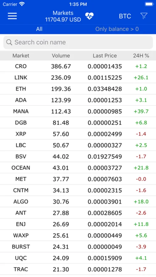 - Display the list of the market with option to display only markets where you have a balance over 0.