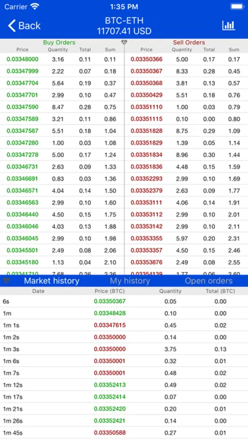 - Trade history screen