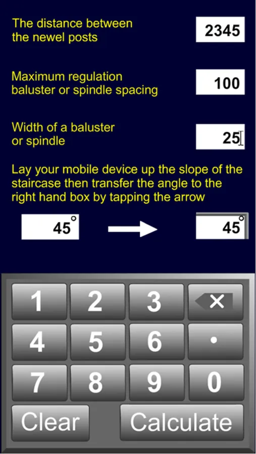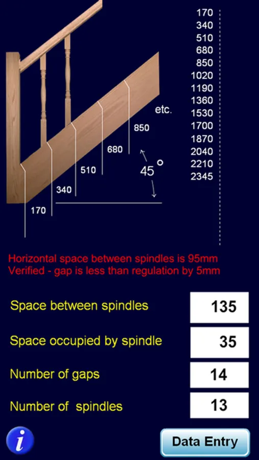 A convenient and very easy to use calculator to obtain the spindle spacings between newel posts.