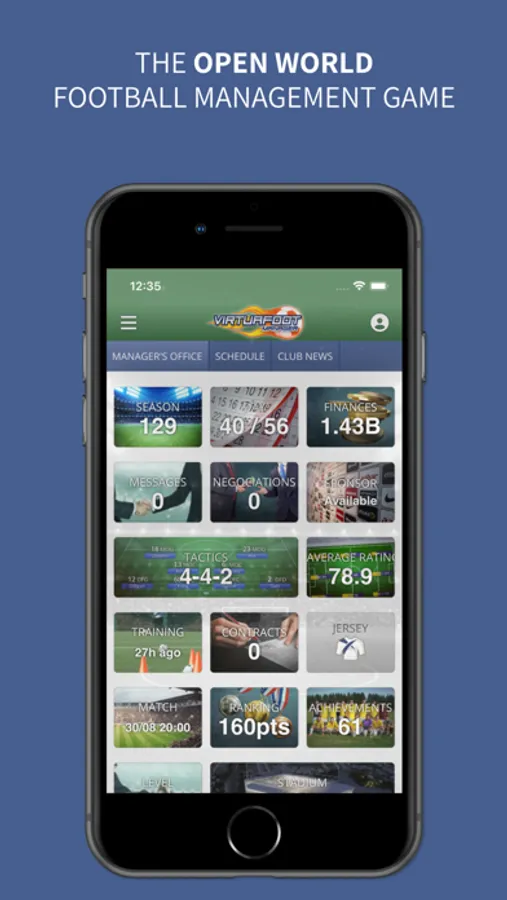 Virtuafoot Manager is a football team management game. Recruit your players in the transfer market, create your strategy and manage the club's life.