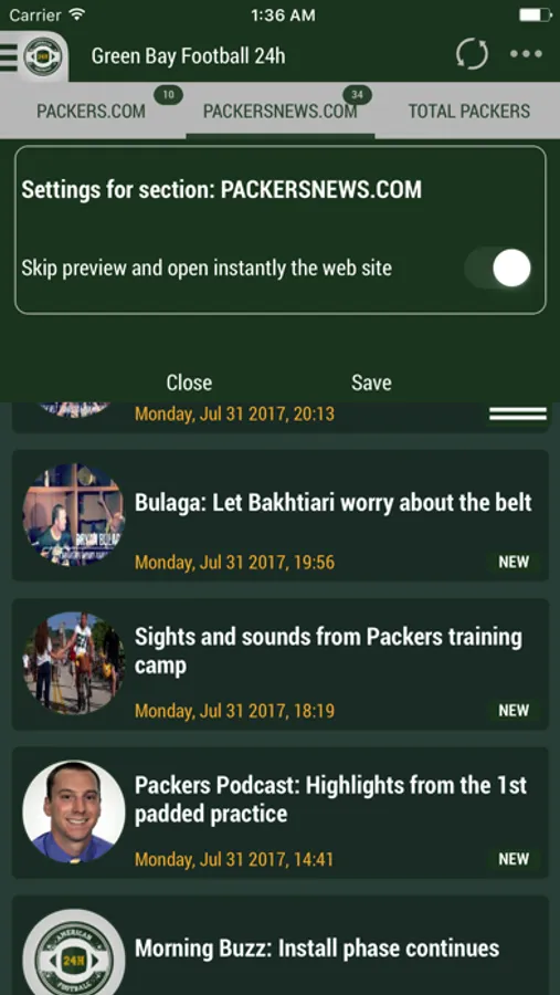 Simply the best! Green Bay Packers 24h mashes up news from newspapers and web portals in a single app!