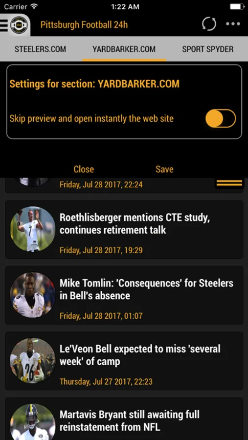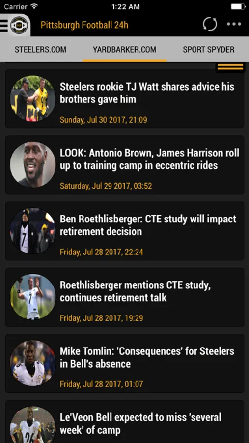 Simply the best! Pittsburgh Steelers 24h mashes up news from newspapers and web portals in a single app!