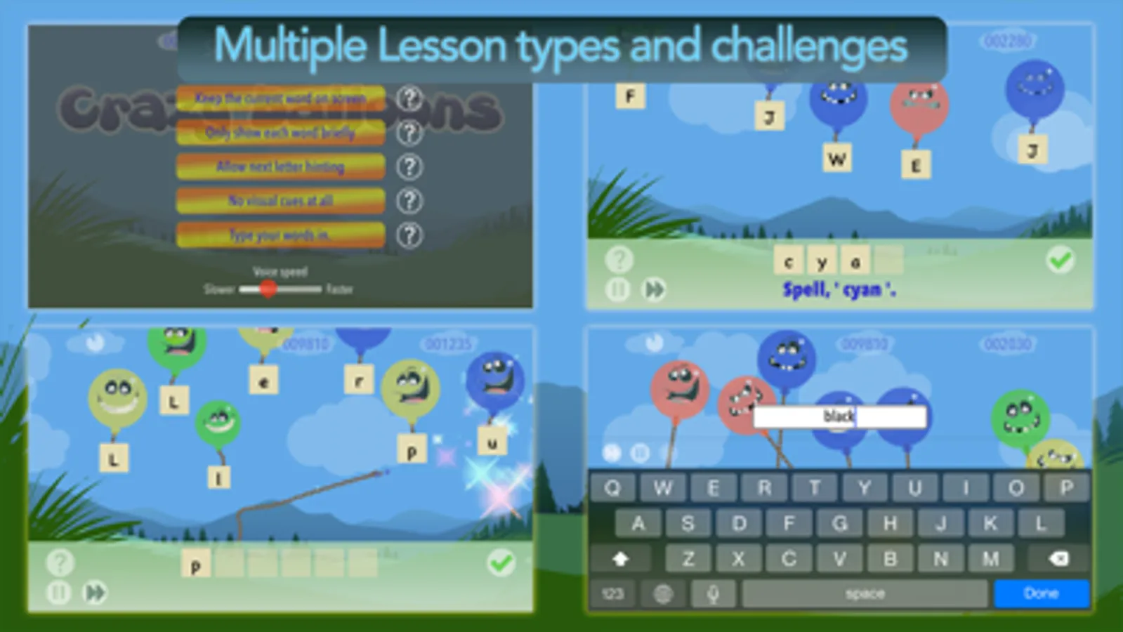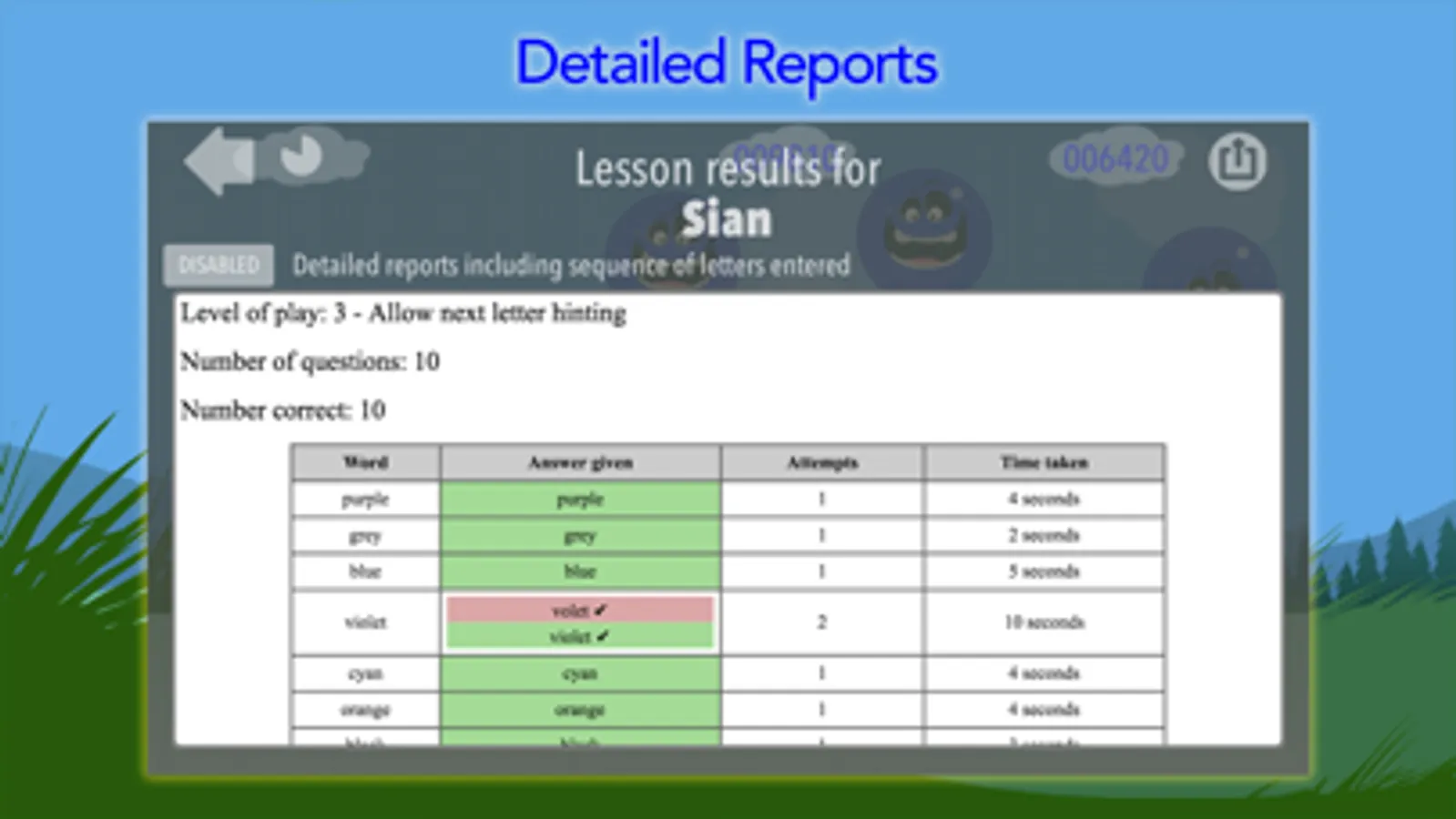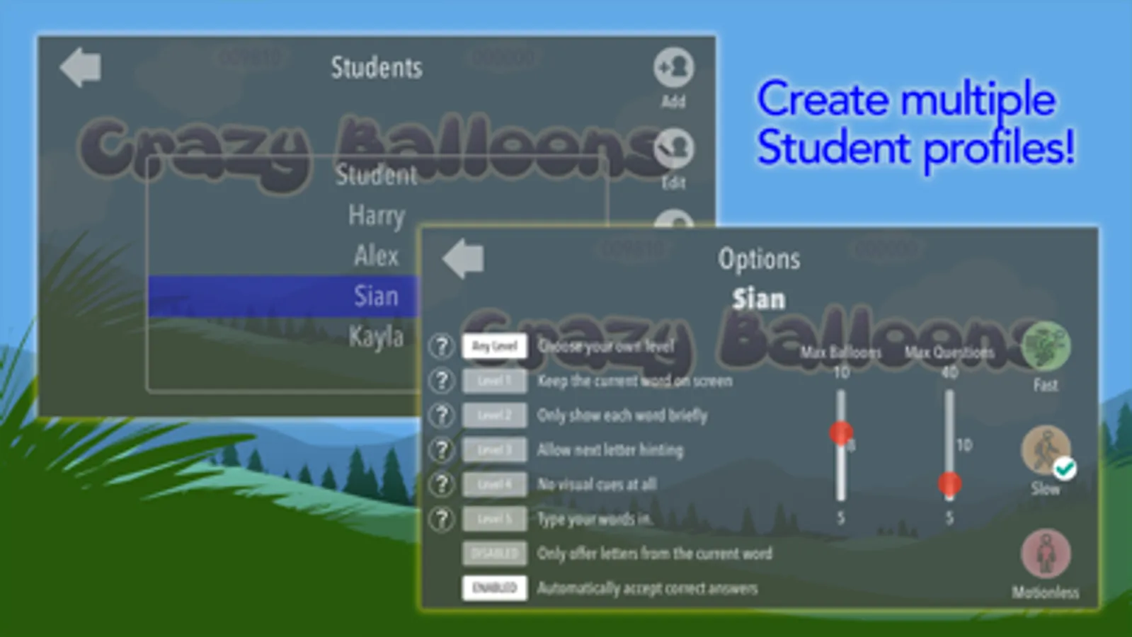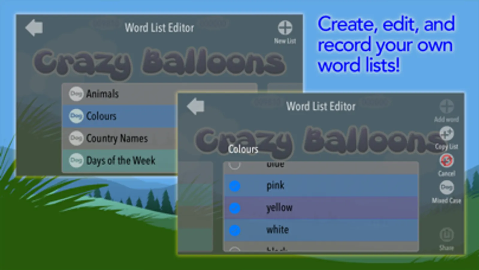 Educators will love being able to read a detailed report (which can be shared via eMail, Messages, or Airdrop) on each game a student plays and Crazy Balloons Spelling is also fully customisable: