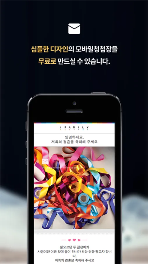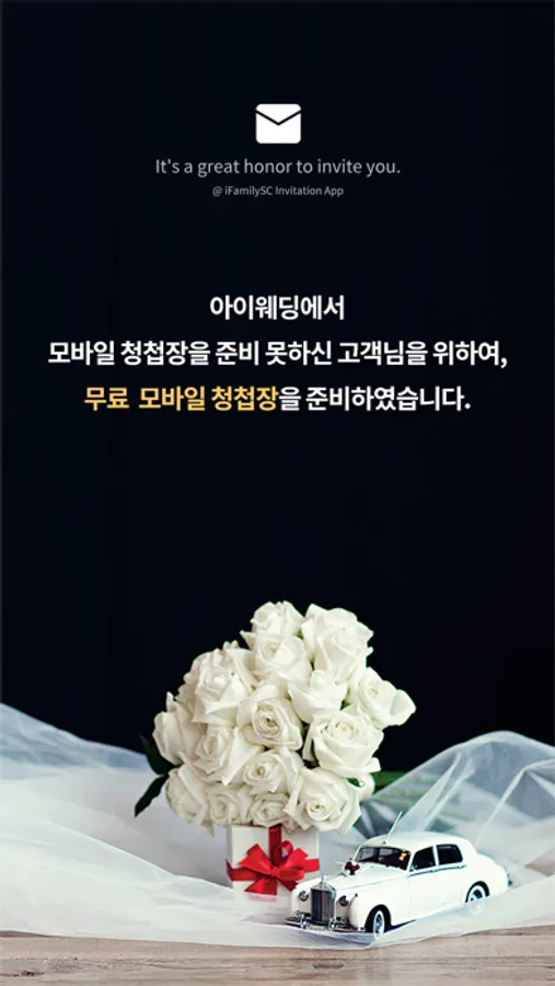 아이웨딩에서 고객님의 편리한 결혼 준비를 위해 모바일 결혼 청첩장 어플리케이션을 준비하였습니다.