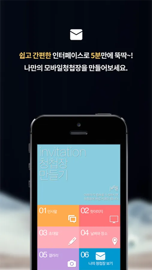 나만의 모바일 청첩장을 만들어보세요. 심플한 디자인의 모바일 청첩장을 무료로 만드실 수 있습니다.