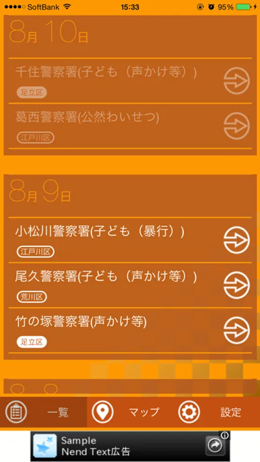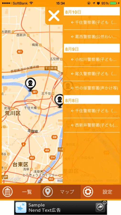 本アプリは警視庁から提供される、声掛け・不審者出没といった子供に対する犯罪をリアルタイムで教えてくれるものです。