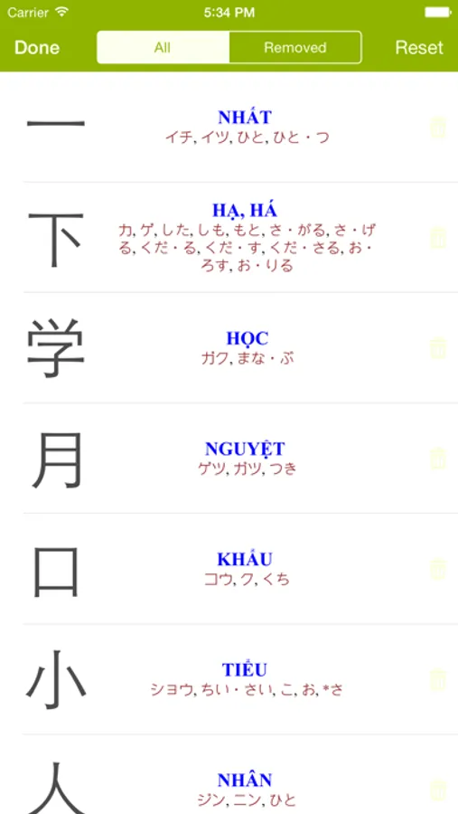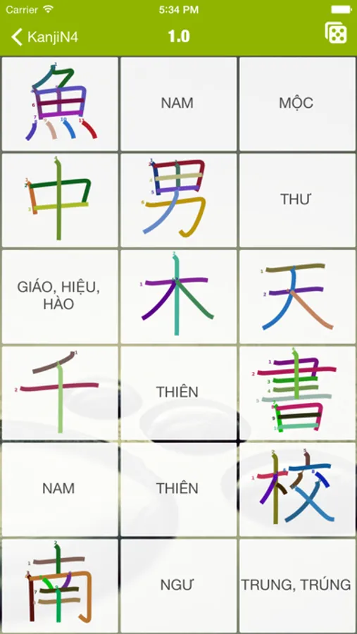- Ghép 2 thẻ : chọn thẻ Hán Tự và Hán Việt trùng khớp nhau.