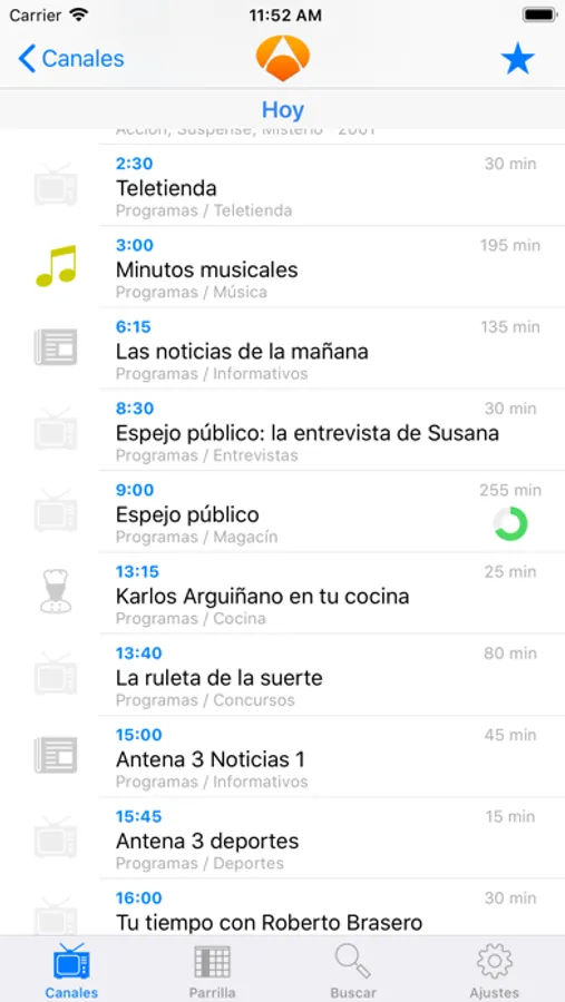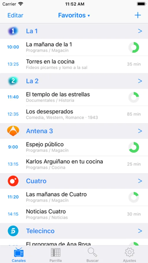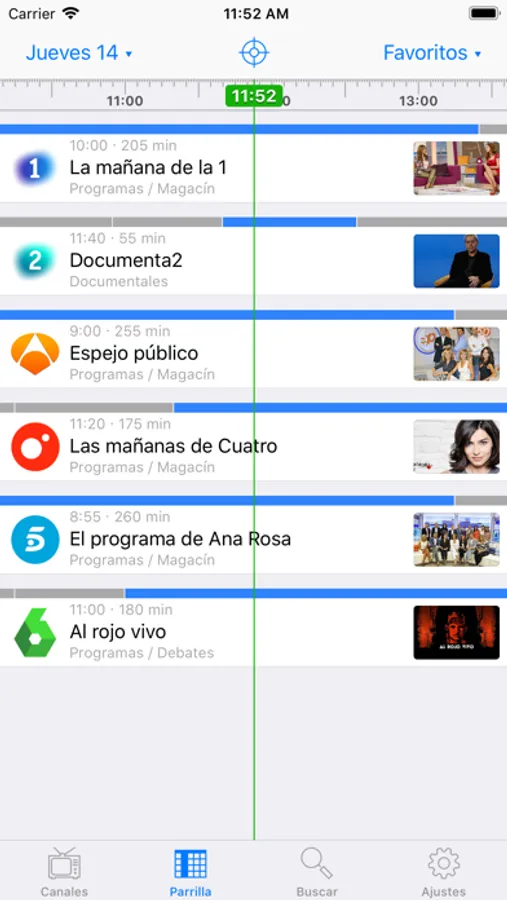 • Parrilla: Navega por franja horaria y categorías de canales de una manera muy visual y rápida de toda la programación del día en curso.