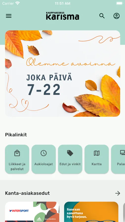 • Kauppojen tarjoukset, aukioloajat, sijaintitiedot ja yhteystiedot