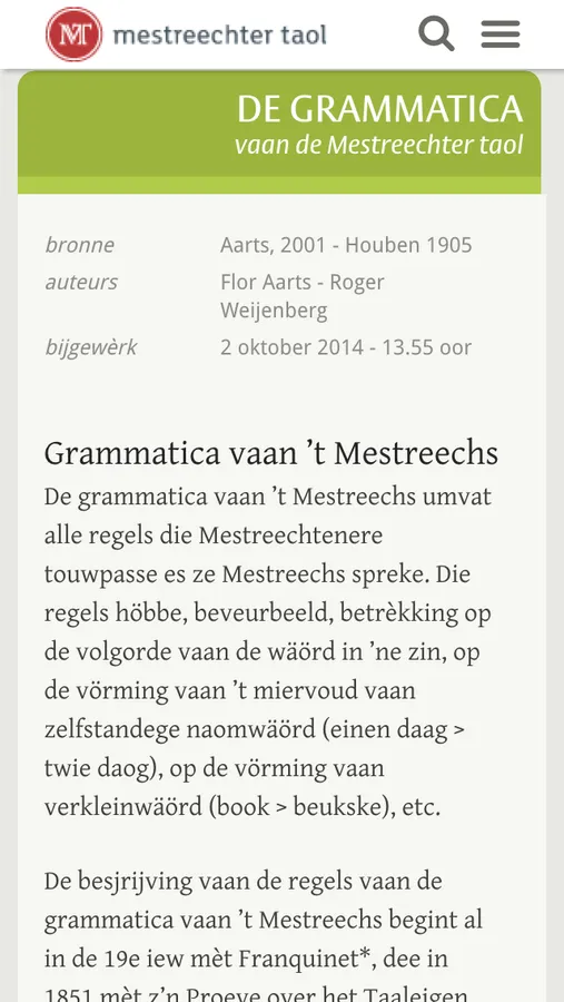 Naast deze uitgebreide dictionaire wordt er ook uitleg gegeven over 't Mestreechs. De app is daardoor één groot naslagwerk geworden.