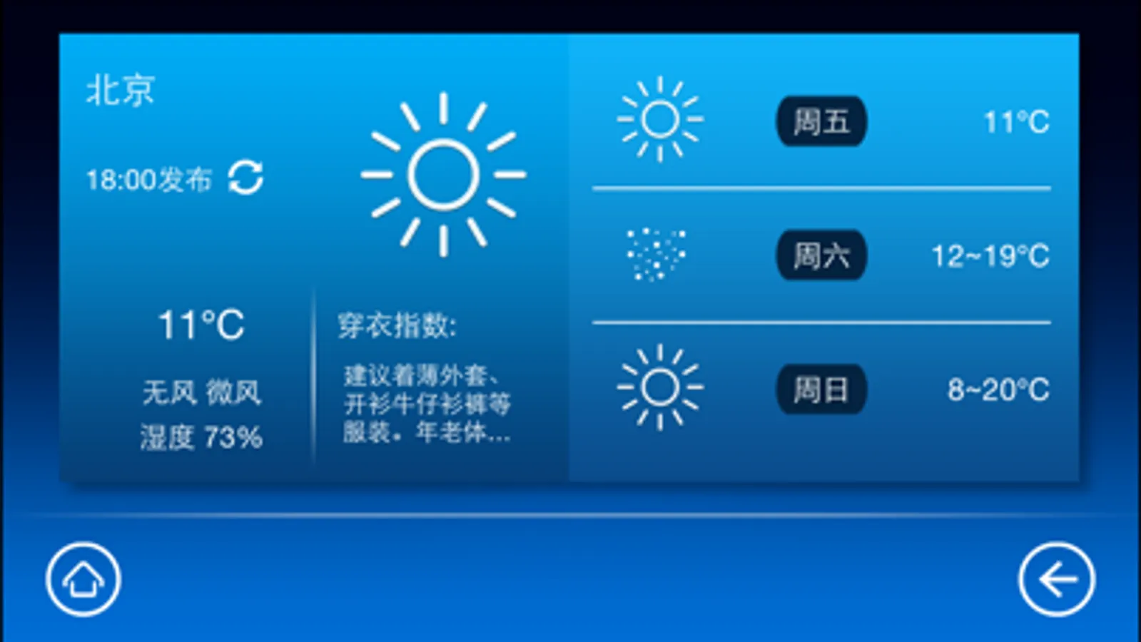 天气功能:用户可以通过定位或者手动的方式添加城市,从网络上获取添加城市的天气信息,并且可以在车载终端进行操作。