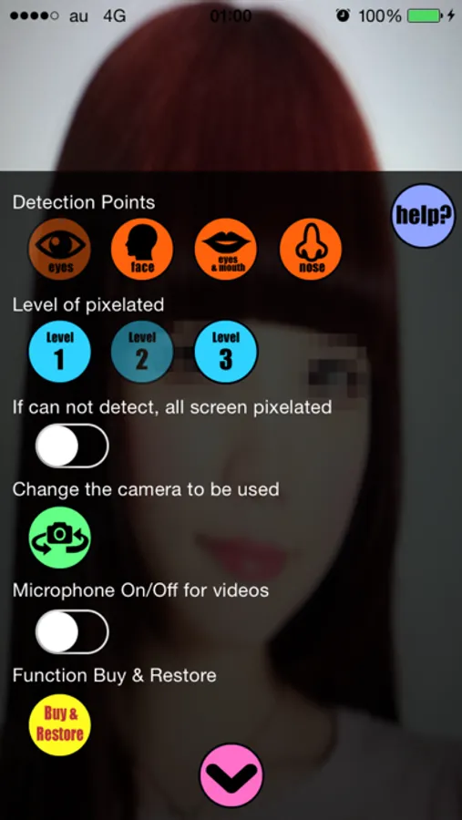 Pixelization position can choose from "eyes", "face", "eyes and mouth", "nose".