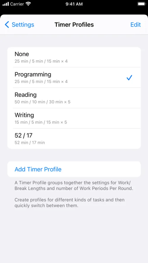 • Use Timer Profiles to configure timer settings for different kinds of task.
