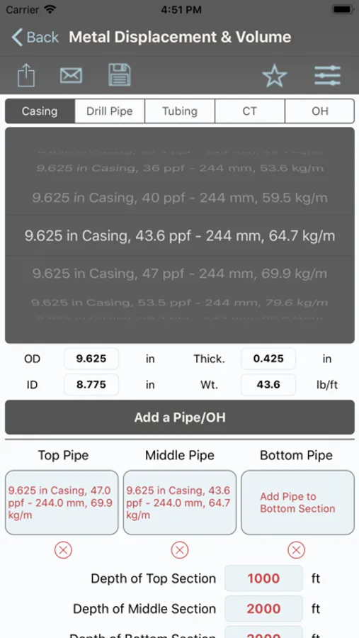 Pipes (Oilfield) App computes the volumes and weights of various oilfield pipes. This includes the calculation of: