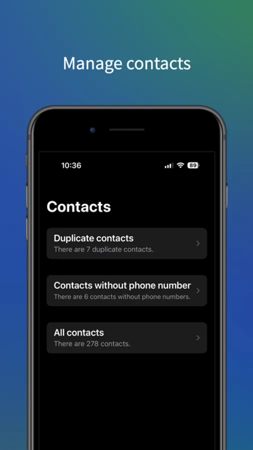 - Contact Optimization: Clean up your contact list by easily identifying and deleting duplicate contacts. You can also find and delete contacts without phone numbers to keep your address book cleaner.