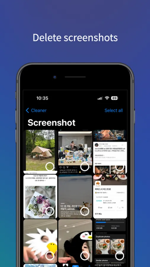- Organize photos: quickly find and delete duplicates and similar photos to optimize your storage space. You can manage screenshots and videos no longer taking up space.