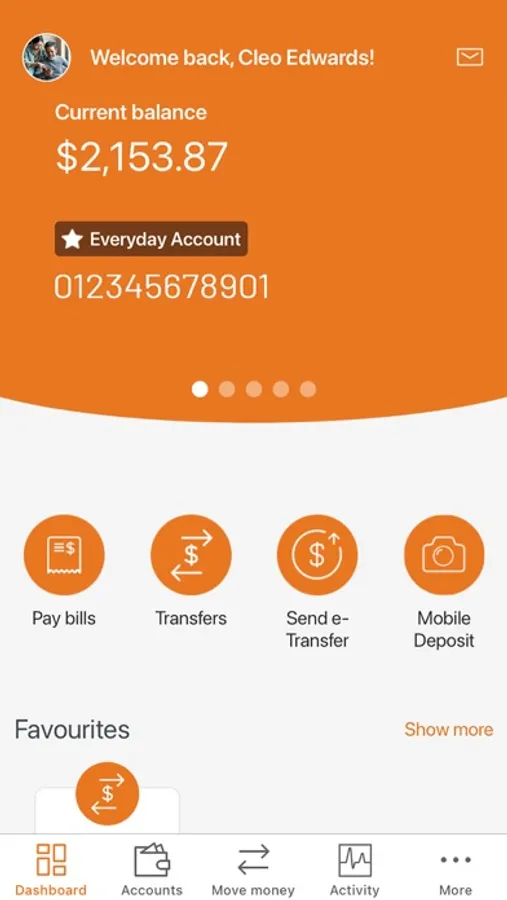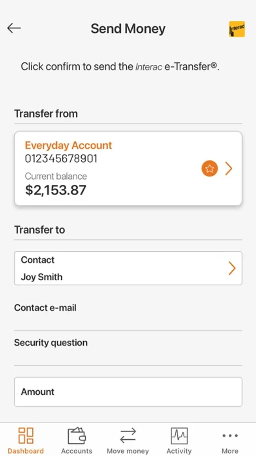 • Transfer funds and send/receive Interac e-Transfers®