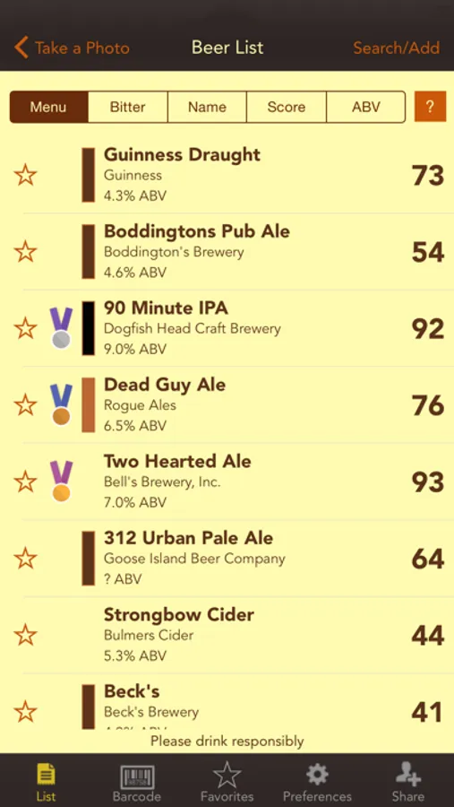 • Favorite beers tracker