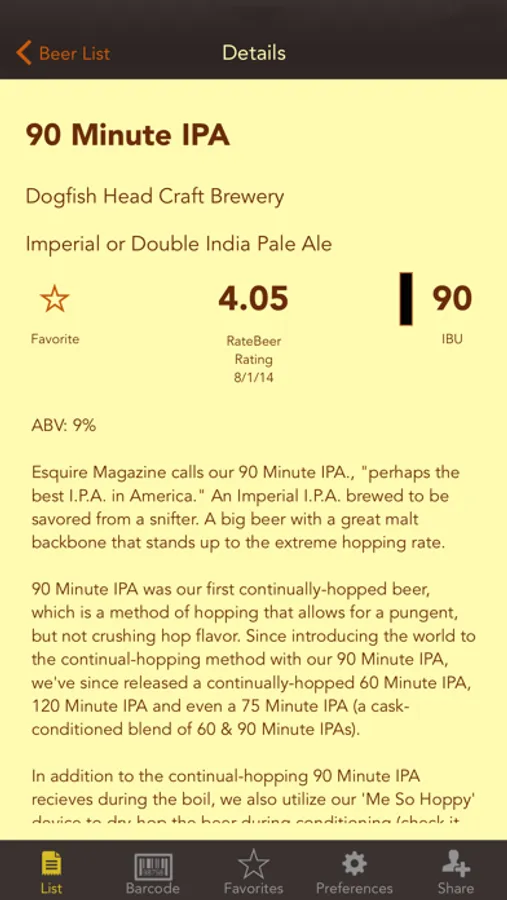 Beer rating details provided by RateBeer.