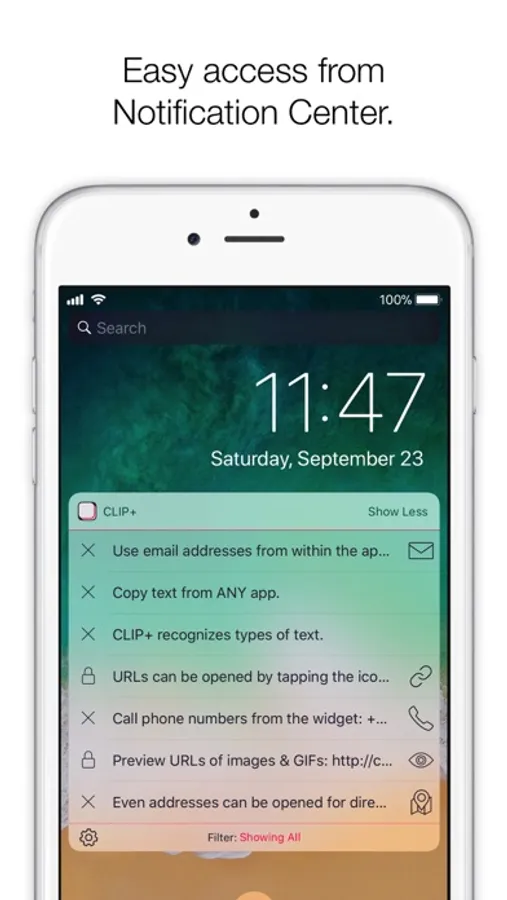 As seen in Top 50 Paid Utilities in the US App Store, and ProductHunt's "Automate your Life" collection, CLIP+ is the simple but powerful clipboard manager, now optimized for iOS12. Copy text from ANY app, store it in CLIP+, then quickly access it from Notification Center to paste back into any app.