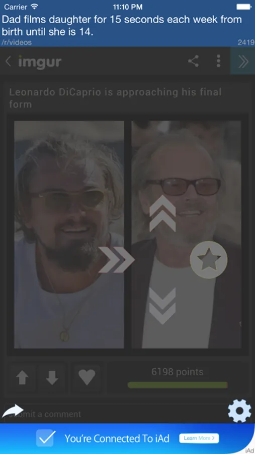 ReadOnce is a new mobile experience for reddit. Press and Swipe up to Up Vote, Swipe down to Down Vote.