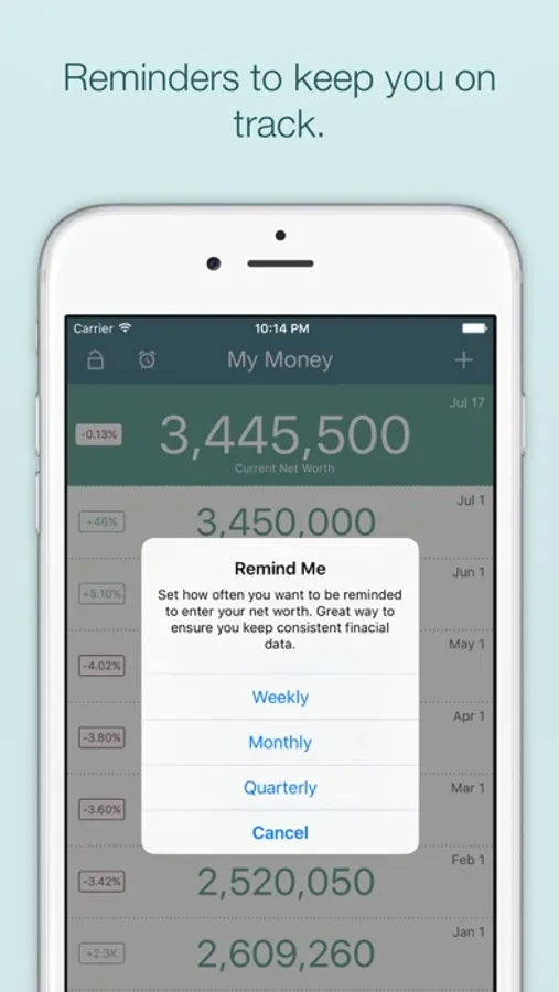 ⋆ Reminder. Be reminded to enter your wealth on a regular basis.